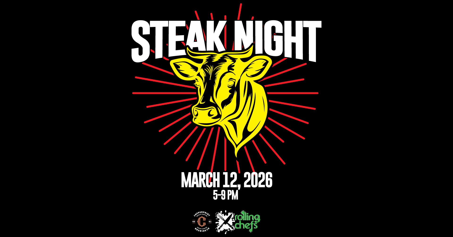 Copperpoint Brewing Co 151 Commerce Road, Boynton BeachIt's time for another Steak Night with our friends from Rolling Chefs. Prime cuts of steak cooked to order, steakhouse style, with all the fixins'. Don't miss out on a night of fine indulgence.
